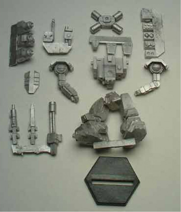 The F2-19 Frame Pack includes a pewter Battle Frame miniature and additional parts for creating different versions. Once assembled, the models are 45mm tall mounted on their hex base. They are the standard 1/144 scale of all Heavy Gear Blitz miniatures.